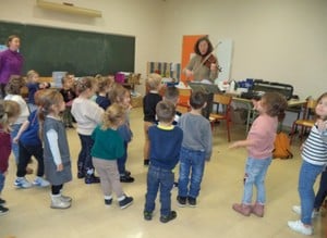 Avec Catherine, intervenante, ils ont pu expérimenter leur voix et travailler en groupe dans le but de produire une représentation en fin d’année.